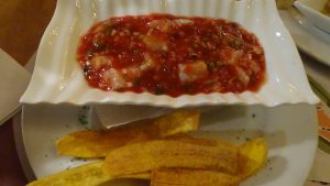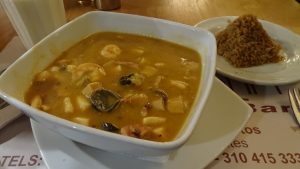 J’ai pris un céviche de poisson et une soupe de fruit de mer servi avec du riz.