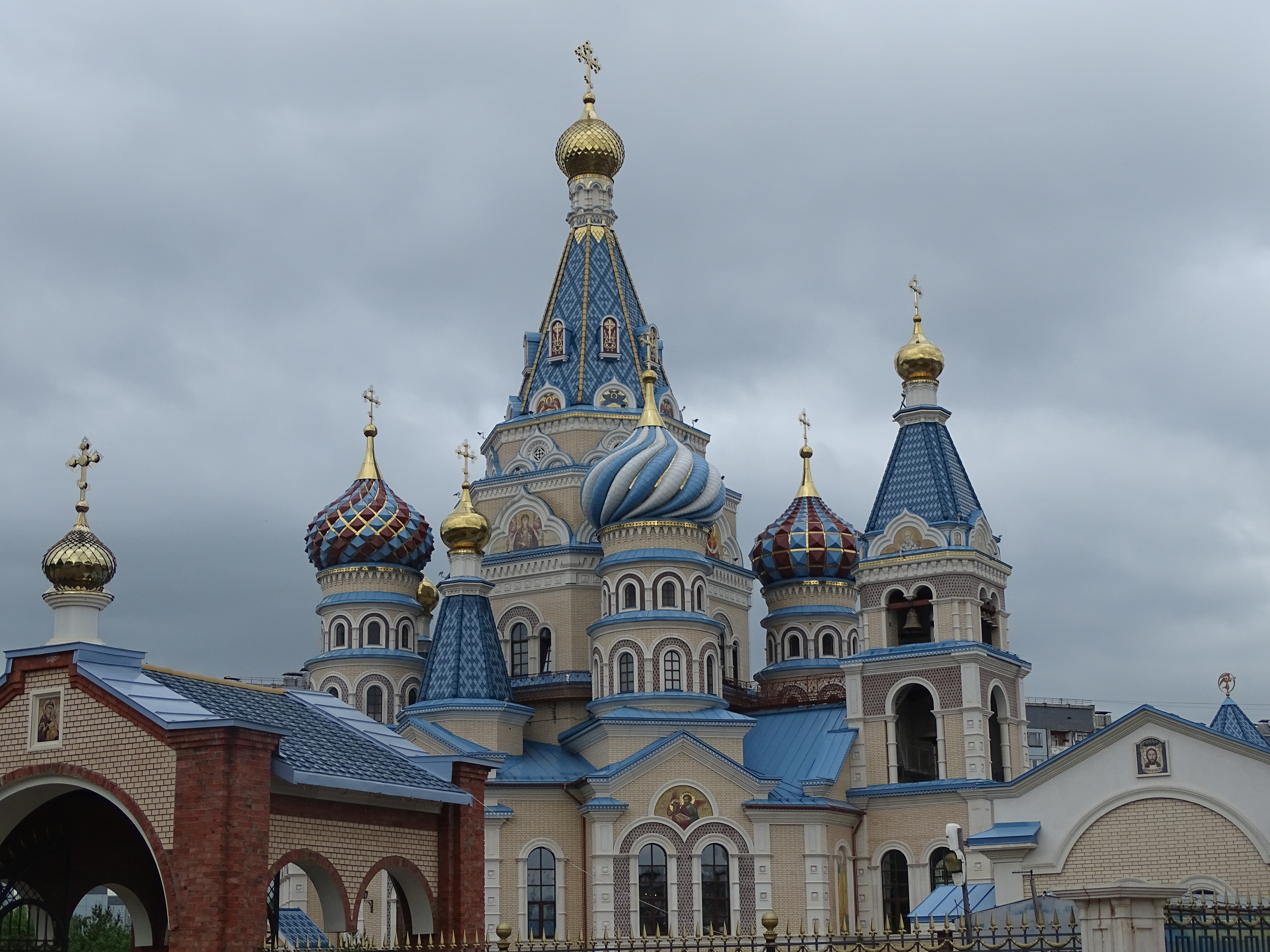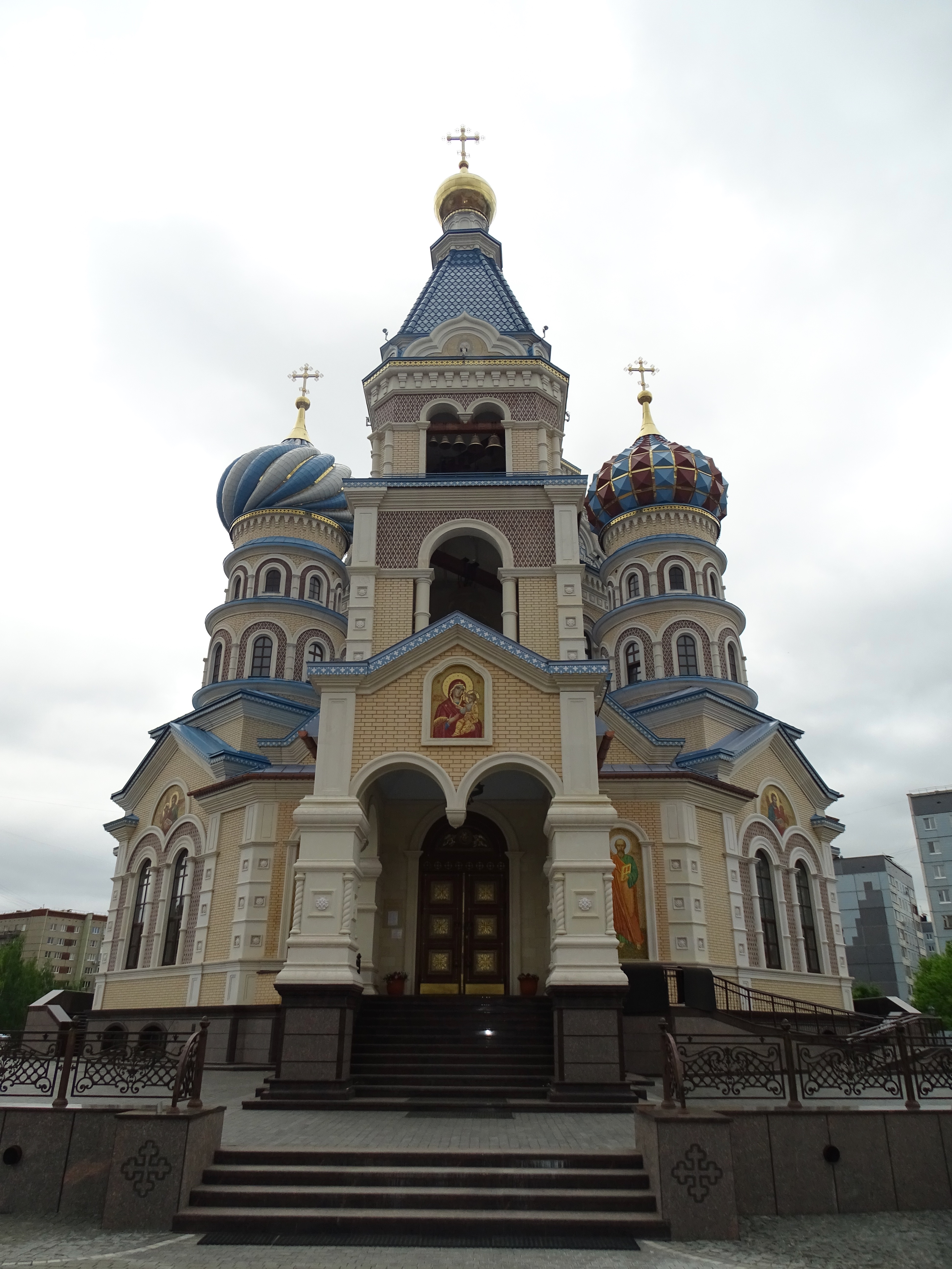 Elle s’appelle KRAM IVERSKOY IKONY et est située sur l’ulitsa Lenina. En discutant avec un passant qui me voyait prendre des photos et qui parlait anglais, il m’a informé que la cathédrale était en fin de construction, donc ressente. Avec ses couleurs, elle s’intègrait parfaitement au quartier.