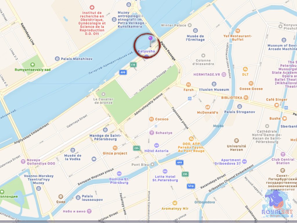 Vous pouvez repérer le point rouge comme étant le lieu d’embarquement de la compagnie PETERHOF EXPRESS.