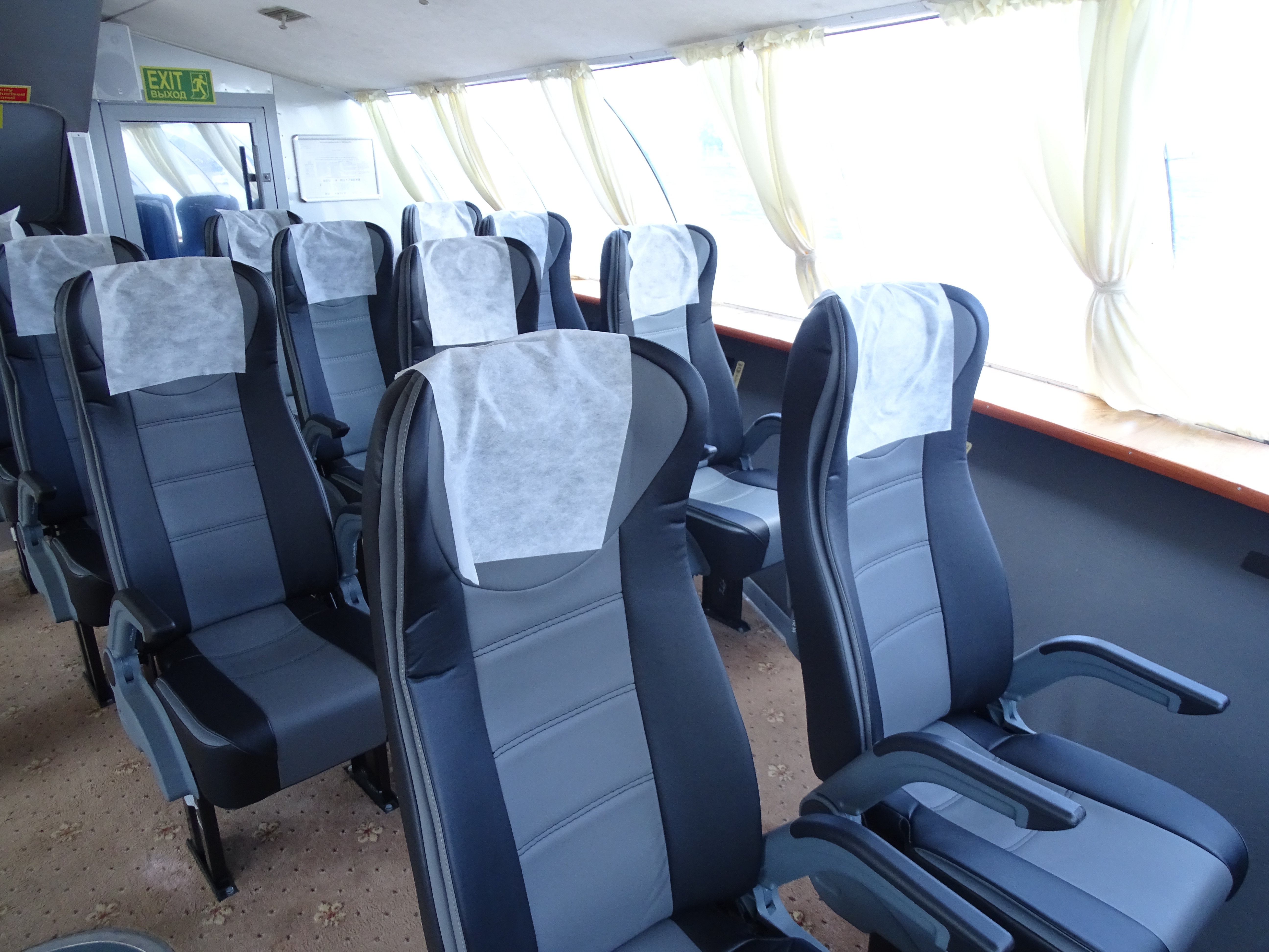 L’avantage de la business est qu’elle est située à l’avant du Méteor. On est donc au première loge concernant la vue. Aussi, les sièges sont plus confortables et le tarif inclus un boisson au choix (Jus de fruit, thé ou café, eau) + un petit chocolat.