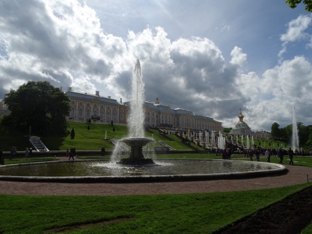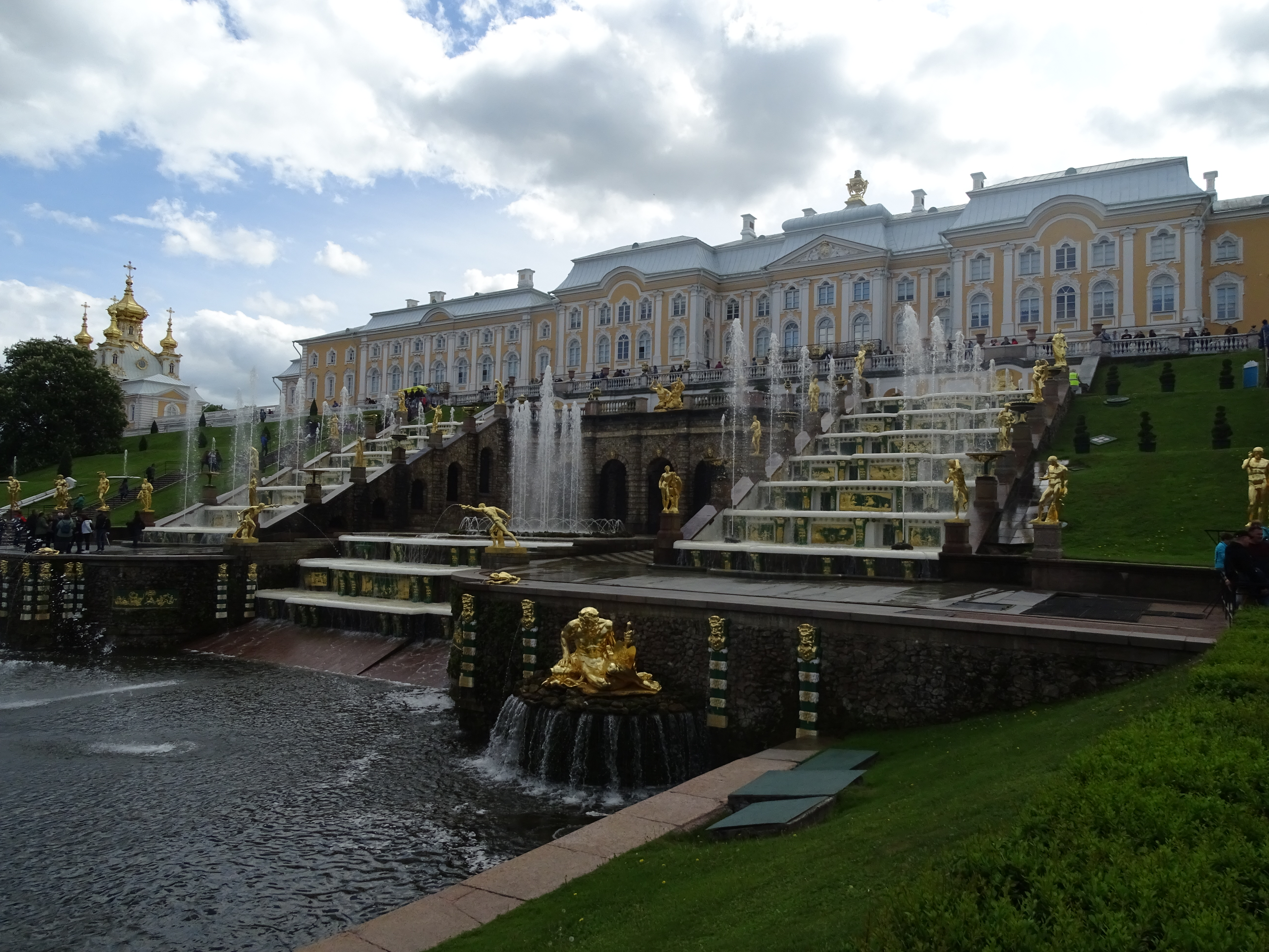 Un peu d’histoire: Le Palais PETERHOF a été construit de 1714 à 1723, à la demande de Pierre Le Grand, qui en fit sa résidence principale. Le palais se voulait plus beau que le Château de Versailles et se déploie sur 268 mètres, le long du golfe de Finlande. Il possède un jardin inférieur s’étendant sur 100 hectares et un jardin supérieur (gratuit) s’étendant sur 15 hectares.