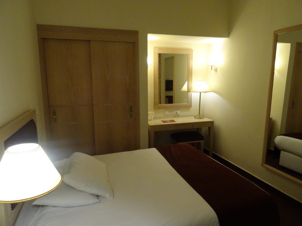 Après le trajet en bus et à peine 10 minutes de taxi à 10 € (trajet partagé), me voici dans mon hôtel, où je vais passer mes premières nuits.