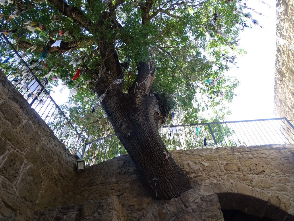 L’entrée est signalée par un arbre où sont suspendus des morceaux de tissus que voici d’ailleurs: