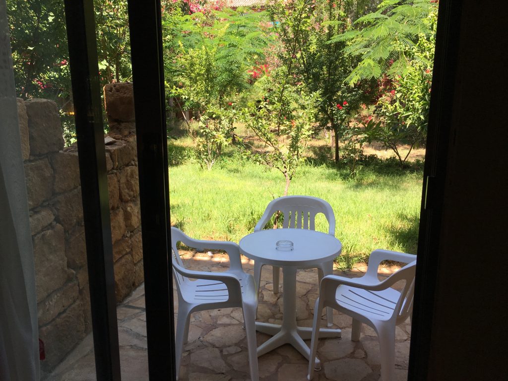 Cependant, j’avais une chambre avec jardin et chant de cigales. Je me demandais si ce n’était pas le pire décor de chambre que j’avais eu de tous mes voyages.