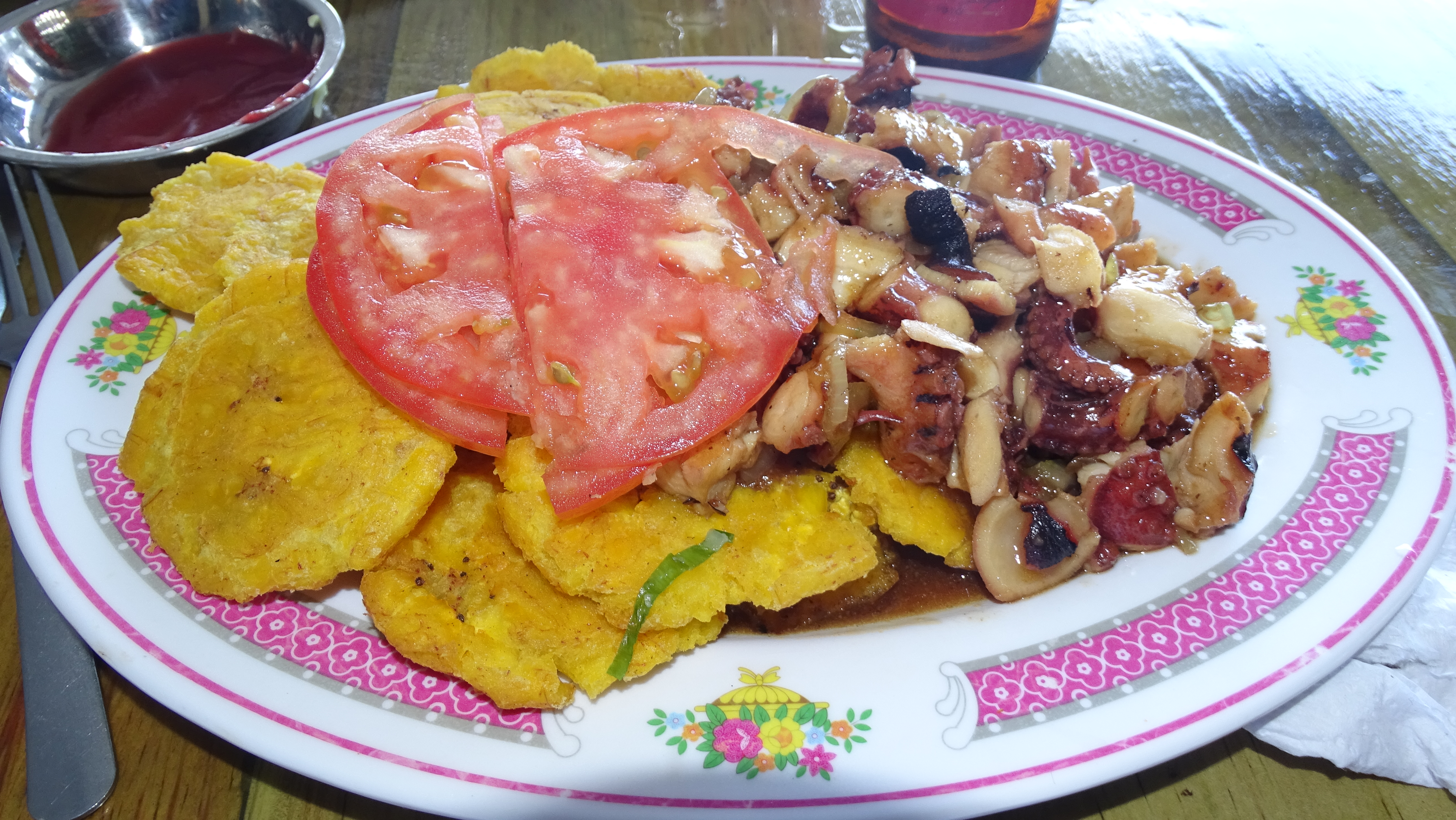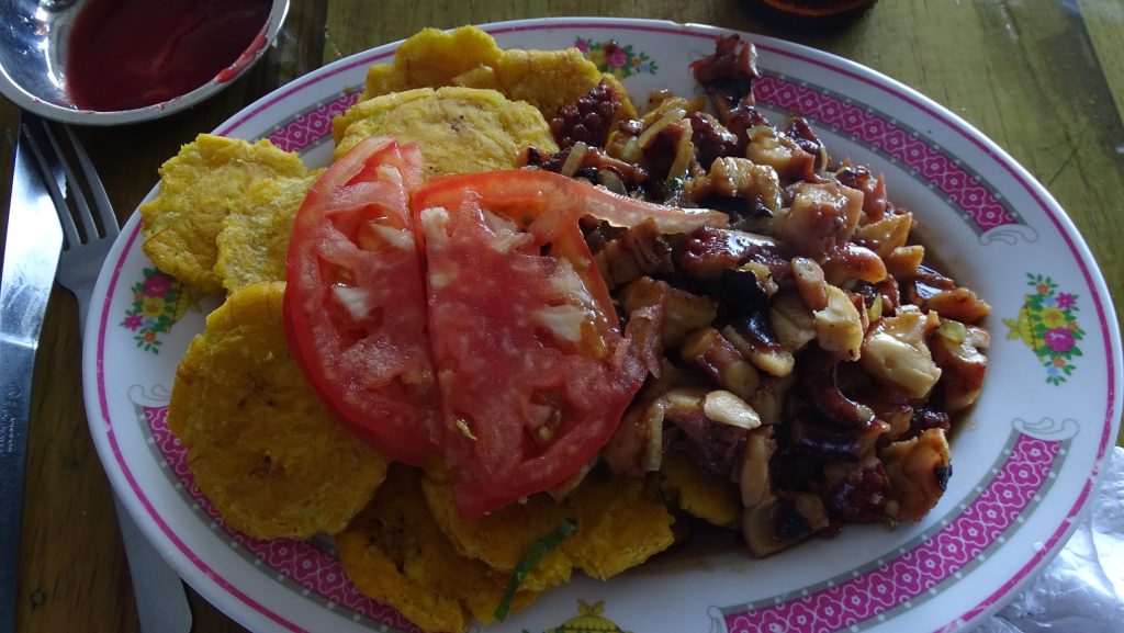 C’est lors de ma dernière étape au Panama, dans les îles Bocas del Torro que j’ai découvert ce plat. Etant en bord de mer, je ne pouvais que manger local. Les pieuvres étaient très bien cuisinées avec des épices, des aromates et étaient servies avec des bananes plantins écrasées, ainsi que de la tomate. Le tout descendait parfaitement avec une bière locale et artisanale, la Balboa.