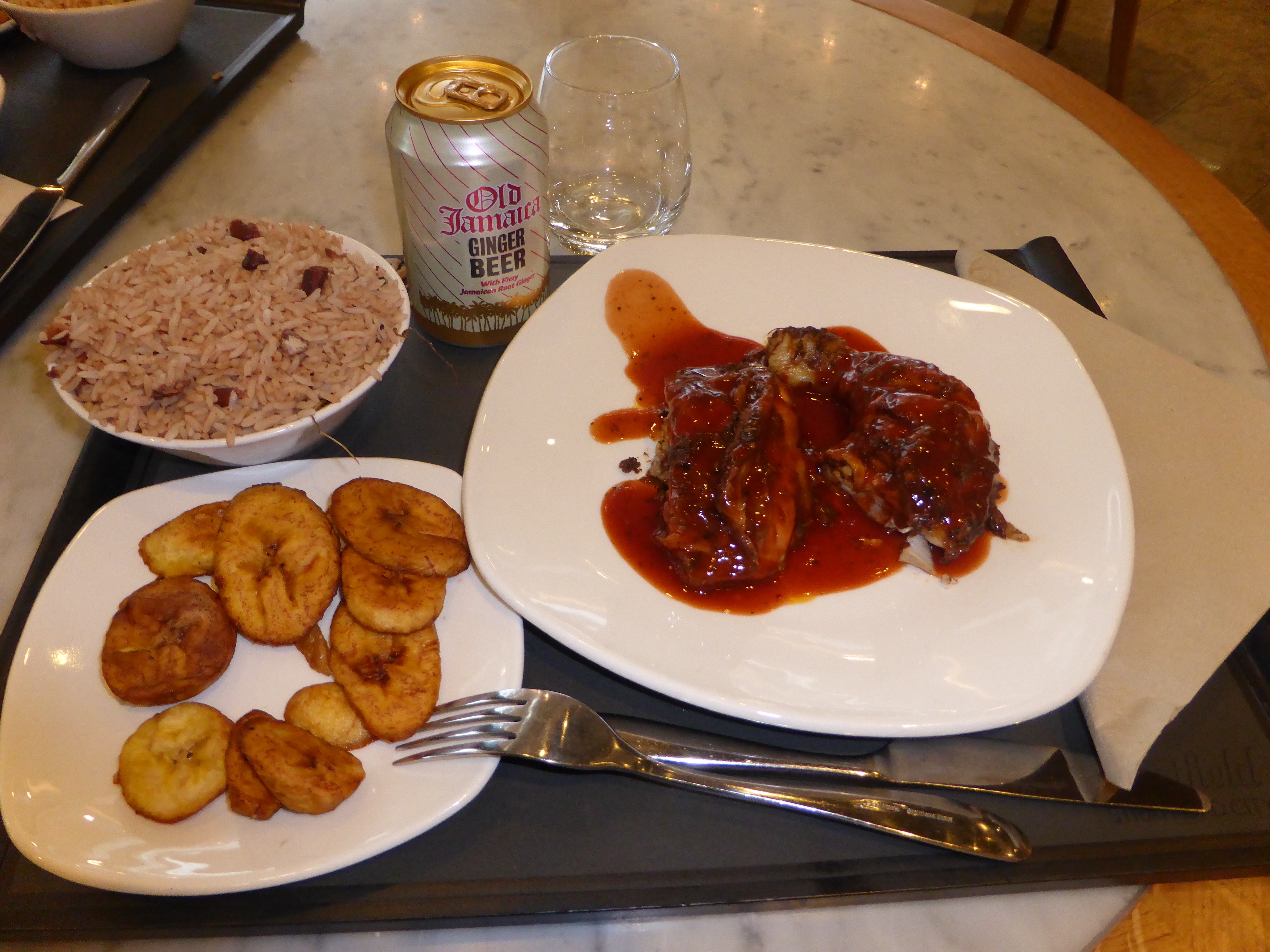 Qu’on se le dise, le poulet ou le poisson à la Jamaïquaine est vraiment une réussite en bouche. Toutefois, j’ai jeté mon dévolu sur poulet au barbecue, qui était épicé et relevé avec justesse. C’est généralement servi avec du riz haricots rouges et des bananes plantains. Faites le tout descendre avec un Ginger Beer. Nous sommes d’accord, je n’ai pas encore visité la Jamaïque (ça viendra) mais rendez-vous à London City si l’idée vous venait de vous régaler.